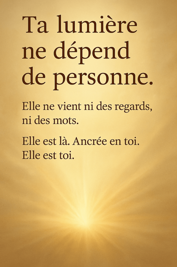 Ta lumière n’attend pas d’être validée pour exister, elle n’a pas besoin d’être applaudie pour être réelle, elle est là, même quand tu doutes, même quand tu t’éloignes, elle est là, silencieuse et fidèle.